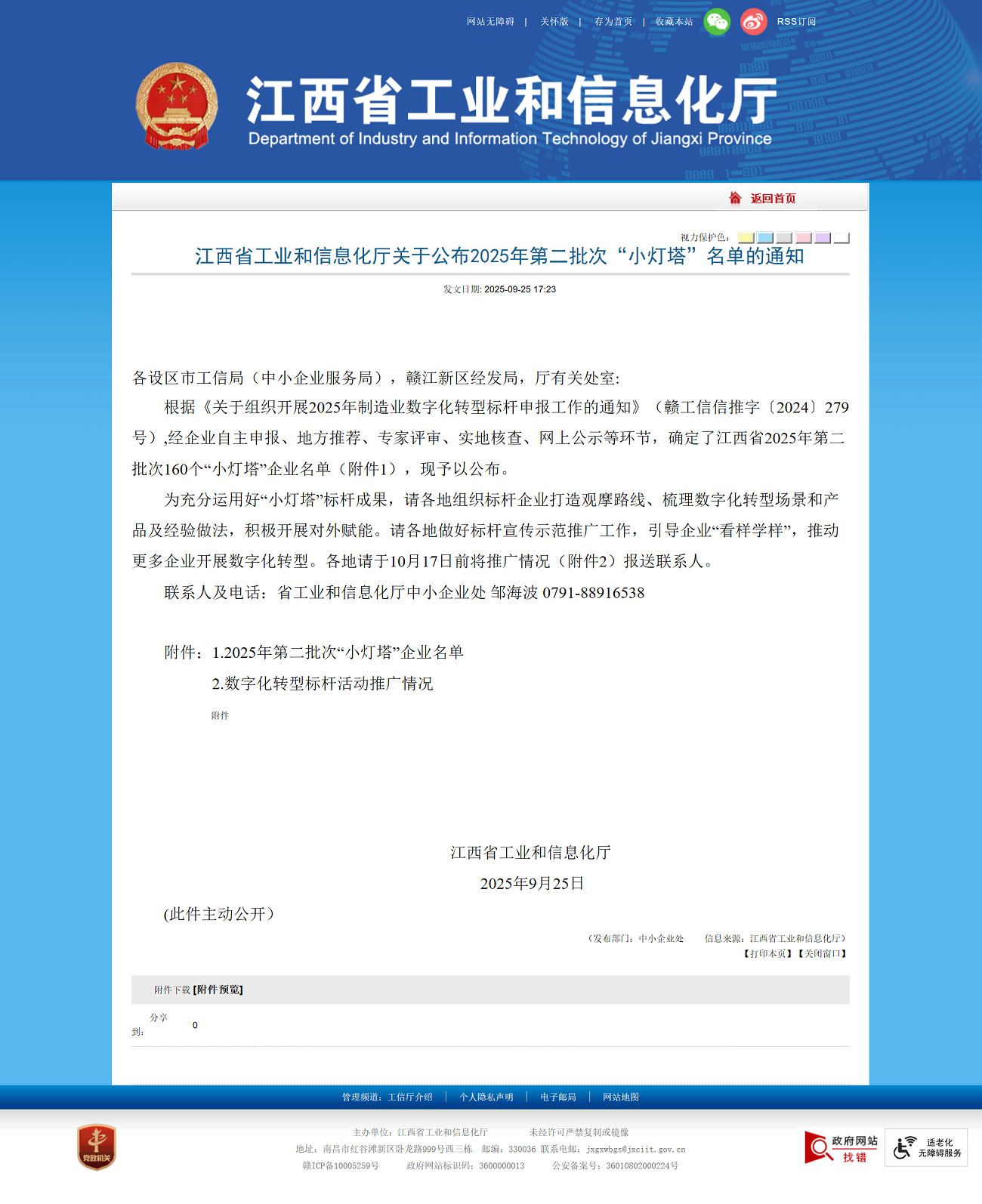 据悉,“小灯塔”企业评选是江西省为促进制造业智能化改造和数字化转型而设立的重要示范项目,旨在遴选一批在数字化、智能化方面具有引领效应的标杆企业。